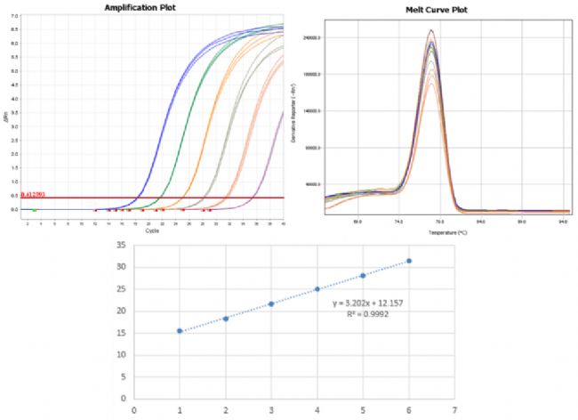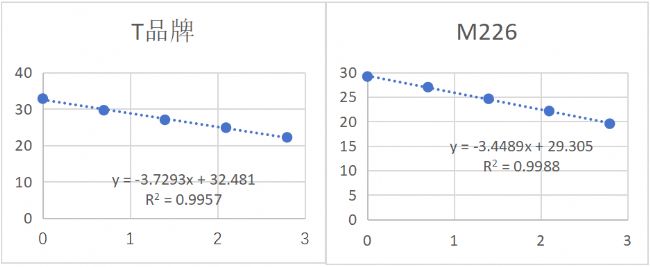 用cDNA按5的倍數(shù)稀釋5個(gè)梯度,用Magic qPCR Master Mix (Probe)進(jìn)行擴(kuò)增分析