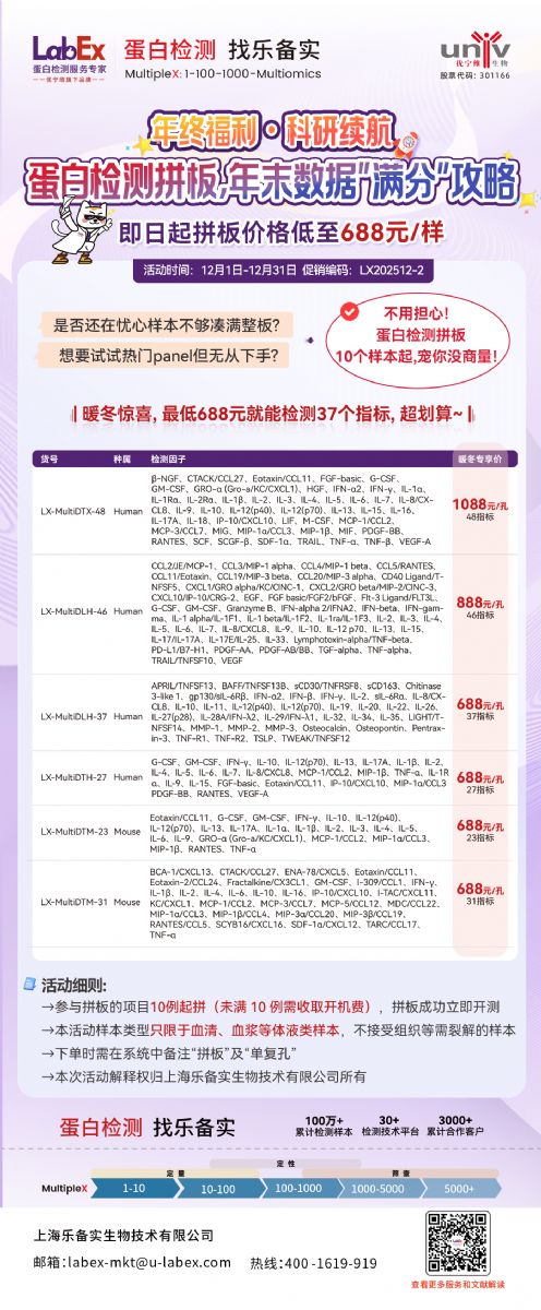 樂備實蛋白檢測拼板、趨化因子檢測多重年終福利開啟