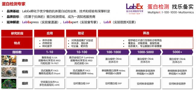 樂備實(shí)(上海優(yōu)寧維生物科技股份有限公司旗下全資子公司),是國內(nèi)專注于提供高質(zhì)量蛋白檢測以及組學(xué)分析服務(wù)的實(shí)驗(yàn)服務(wù)專家,自2018年成立以來,樂備實(shí)不斷尋求突破,公司的服務(wù)技術(shù)平臺已擴(kuò)展到單細(xì)胞測序、空間多組學(xué)、流式檢測、超敏電化學(xué)發(fā)光、Luminex多因子檢測、抗體芯片、PCR Array、ELISA、Elispot、PLA蛋白互作、多色免疫組化、DSP空間多組學(xué)等30多個,建立起了一套涵蓋基因、蛋白、細(xì)胞以及組織水平實(shí)驗(yàn)的完整檢測體系。