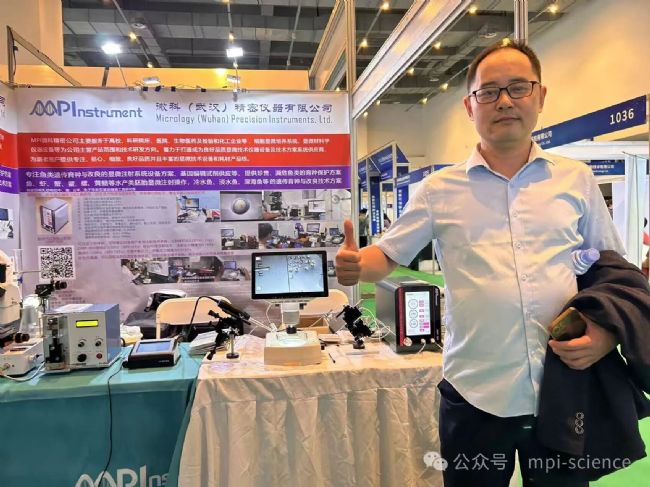 我司于現(xiàn)場展出如顯微注射系統(tǒng)、拉針、磨針等精密儀器,特別是新型號(hào)內(nèi)置供氣泵的顯微注射儀DMP-900系列產(chǎn)品,因其相較于以往國內(nèi)外類似設(shè)備在精度等性能方面提升10個(gè)數(shù)量級(jí),穩(wěn)定性及便捷性方面有較大幅度提升,獲得了現(xiàn)場不少專家的關(guān)注和好評(píng)。