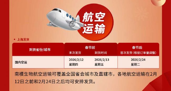 南模生物2026年春節(jié)期間發(fā)貨安排