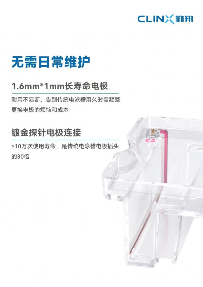 電泳槽用久了,鉑金絲電極易斷?近期,Clinx勤翔新一代電泳系統(tǒng)發(fā)布。 新系統(tǒng)采用: