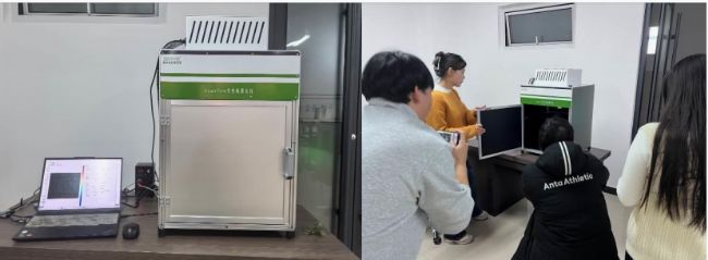 交付現(xiàn)場(chǎng),工程師以洋紫荊葉片為例演示數(shù)據(jù)采集分析流程,獲得葉綠素?zé)晒饧岸喙庾V熒光成像數(shù)據(jù),直觀揭示了葉片不同區(qū)域的生理狀態(tài)差異,充分展現(xiàn)出該系統(tǒng)在植物光合效率及脅迫狀態(tài)檢測(cè)方面的應(yīng)用價(jià)值。