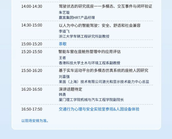 本次“汽車駕駛模擬及智能座艙技術研討會”以“洞悉人因,駕馭未來安全”為主題,旨在匯聚學界與工業(yè)界的頂尖智慧,共同探討這一領域的核心挑戰(zhàn)與前沿進展。議題將涵蓋從分心駕駛的神經機制分析,到基于大數據的駕駛行為建模;從智能座艙、自動駕駛人機界面(HMI)的可用性評估,到端到端仿真測試驗證體系的構建。我們誠摯地邀請您于2026年4月10日-11日相聚香港科技大學(廣州),共繪駕駛人因研究的嶄新藍圖。