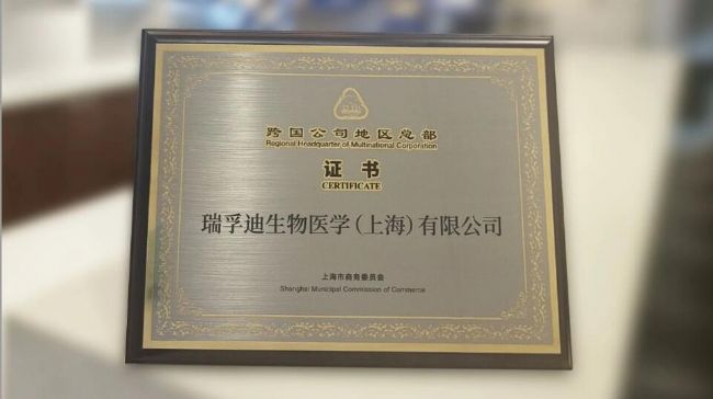 瑞孚迪獲頒“上海市跨國(guó)公司地區(qū)總部”證書(shū)
