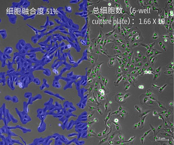 ▲U2OS細(xì)胞,左:細(xì)胞融合度分析示意圖,右:細(xì)胞計(jì)數(shù)分析示意圖