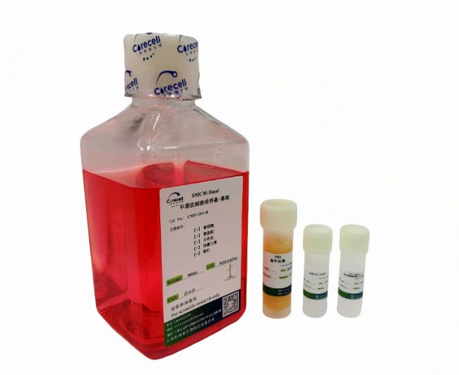 - 平滑肌細(xì)胞培養(yǎng)基(CMP-1101):含 2% 低濃度胎牛血清,搭配專屬平滑肌細(xì)胞生長(zhǎng)因子,輔以必需 / 非必需氨基酸、維生素、微量礦物質(zhì)等多種營(yíng)養(yǎng)成分,重碳酸鹽緩沖體系在 5% CO₂培養(yǎng)箱中可穩(wěn)定維持 pH7.4,為平滑肌細(xì)胞打造高度適配的生長(zhǎng)環(huán)境,選擇性促進(jìn)其體外增殖,讓細(xì)胞生長(zhǎng)更高效。
