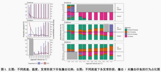 魚(yú)類防護(hù)網(wǎng)是安裝于河流引水口處的關(guān)鍵保護(hù)裝置,其主要作用為借助物理阻隔和水力調(diào)控,避免魚(yú)類被引水設(shè)施卷入或撞擊網(wǎng)面而死亡,給魚(yú)類提供安全逃生的窗口。澳大利亞5家研究機(jī)構(gòu)(McSweeney P J, 2026)聯(lián)合以黃金鱸仔魚(yú)作研究對(duì)象,探究了其在不同發(fā)育階段、流速和水溫下的撞擊風(fēng)險(xiǎn)和游泳行為,結(jié)果顯示,趨近流速超過(guò)0.10 m/s會(huì)大幅提高黃金鱸魚(yú)的撞擊概率,其中原仔魚(yú)最易遭受沖擊,隨著發(fā)育避撞能力顯著增強(qiáng);20℃和25℃的水溫影響較小,仔魚(yú)會(huì)利用水力避難或沖刺-滑行行為來(lái)避撞。研究證實(shí)澳洲現(xiàn)行防護(hù)網(wǎng)0.10 m/s的流速設(shè)計(jì)標(biāo)準(zhǔn)能有效保護(hù)仔魚(yú),為魚(yú)類防護(hù)網(wǎng)的設(shè)計(jì)提供了科學(xué)依據(jù)。