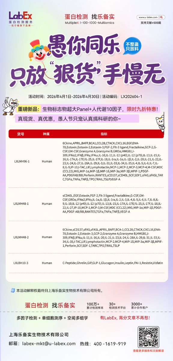 樂(lè)備實(shí)(上海優(yōu)寧維生物科技股份有限公司旗下全資子公司),是國(guó)內(nèi)專(zhuān)注于提供高質(zhì)量蛋白檢測(cè)以及組學(xué)分析服務(wù)的實(shí)驗(yàn)服務(wù)專(zhuān)家,自2018年成立以來(lái),樂(lè)備實(shí)不斷尋求突破,公司的服務(wù)技術(shù)平臺(tái)已擴(kuò)展到單細(xì)胞測(cè)序、空間多組學(xué)、流式檢測(cè)、超敏電化學(xué)發(fā)光、Luminex多因子檢測(cè)、抗體芯片、PCR Array、ELISA、Elispot、PLA蛋白互作、多色免疫組化、DSP空間多組學(xué)等30多個(gè),建立起了一套涵蓋基因、蛋白、細(xì)胞以及組織水平實(shí)驗(yàn)的完整檢測(cè)體系。