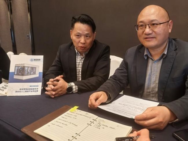 ▲右(市場部姚總)中(研發(fā)部胡博士)在介紹公司產(chǎn)品