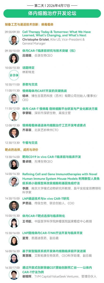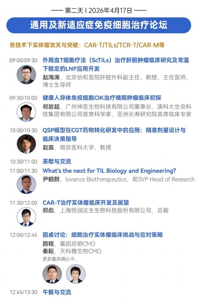 4月16日至17日,第十一屆免疫基因及細(xì)胞治療大會(huì)(IGC 2026) 將于北京朝陽(yáng)悠唐皇冠假日酒店啟幕。值此“818號(hào)令”與“828號(hào)令”新政實(shí)施前夜,大會(huì)匯聚80+國(guó)內(nèi)外頂尖科學(xué)家、監(jiān)管專(zhuān)家與產(chǎn)業(yè)領(lǐng)袖,深度聚焦體內(nèi)細(xì)胞治療、通用型免疫細(xì)胞、干細(xì)胞與外泌體、mRNA核酸藥物、基因治療、先進(jìn)治療藥品質(zhì)量研究與控制法規(guī)等前沿領(lǐng)域。不僅直面技術(shù)攻堅(jiān)與臨床轉(zhuǎn)化的核心挑戰(zhàn),更將通過(guò)高層閉門(mén)研討,共探“雙軌制”下的合規(guī)路徑與商業(yè)化破局之道。