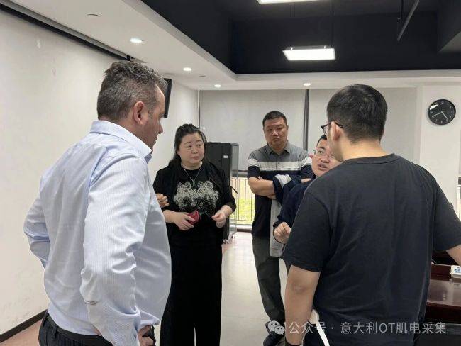 隨后,Andrea先生向深圳先進(jìn)院科研人員詳細(xì)介紹了OT Bioelettronica的先進(jìn)設(shè)備體系,重點(diǎn)展示了Novecento+ 960通道高密度矩陣采集分析系統(tǒng)、Muovi系列便攜式采集設(shè)備等核心產(chǎn)品。其中,Novecento+系統(tǒng)可同時(shí)檢測表面肌電、肌內(nèi)肌電及腦電信號(hào),具備多通道配置、靈活調(diào)節(jié)采樣頻率等優(yōu)勢,可滿足多樣化科研需求;Muovi系列便攜式設(shè)備則憑借無線通信、集成慣性測量單元等特點(diǎn),適用于動(dòng)態(tài)生理信號(hào)監(jiān)測場景,為柔性電極的研發(fā)測試提供了強(qiáng)大的設(shè)備支撐,F(xiàn)場科研人員就設(shè)備性能、應(yīng)用場景等問題與Andrea先生進(jìn)行了互動(dòng)交流,進(jìn)一步加深了對(duì)相關(guān)技術(shù)的了解。