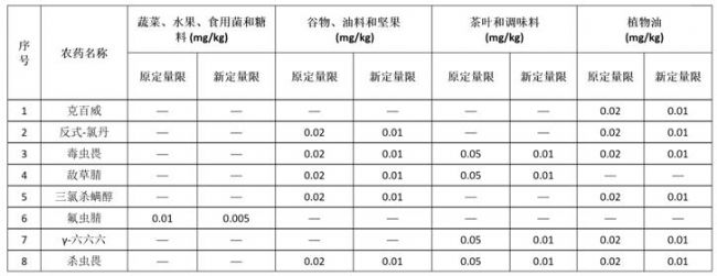 更改了克百威、氟蟲腈等8種農(nóng)藥的方法定量限: