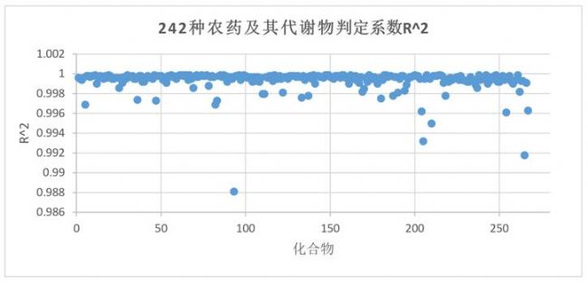 基于新的 QuEChERS 前處理方法,對樣品進(jìn)行高效提取與凈化處理,采用 TSQ 9610 三重四極桿氣質(zhì)聯(lián)用儀完成了242種農(nóng)藥及其代謝物的系統(tǒng)方法學(xué)驗證,充分驗證了方法的靈敏度、準(zhǔn)確性和穩(wěn)定性: