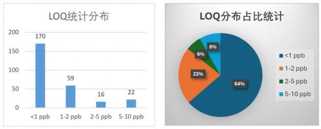 242種農(nóng)藥及其代謝物的茶葉基質(zhì)LOQ分布
