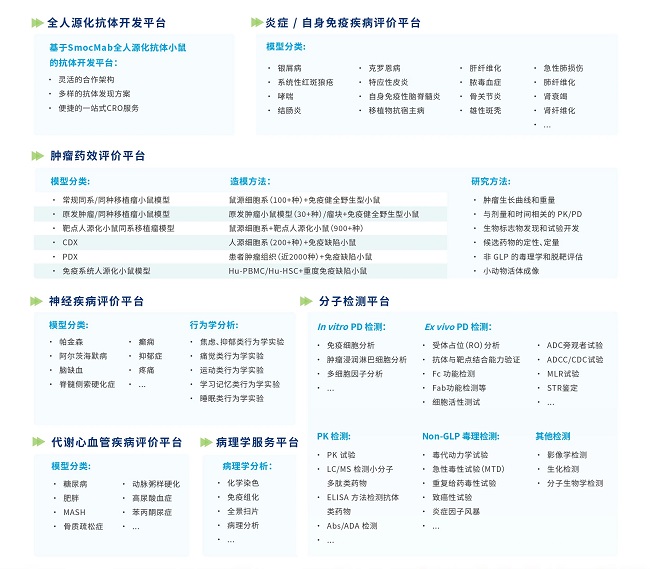 依托上萬種成品小鼠品系庫,南模生物可為客戶提供腫瘤、代謝、免疫、神經(jīng)等多領(lǐng)域成品疾病模型,以及后續(xù)相關(guān)的體內(nèi)藥效評(píng)價(jià)、體內(nèi)外藥理評(píng)價(jià)、組織病理學(xué)毒理學(xué)分析、藥代動(dòng)力學(xué)評(píng)價(jià)、行為學(xué)分析等臨床前藥理藥效研究。