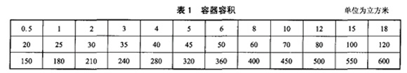表1 容器容積