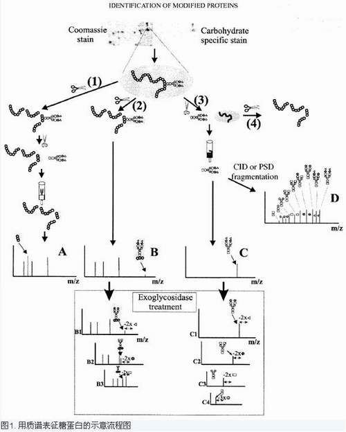 從1D或2D凝膠得到的糖基化蛋白的識別,一般是進(jìn)行MALDI-MS指紋分析,