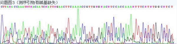有些類似,所不同的是模板堿基缺失一般是在一段正常測序序列后才出現(xiàn)移碼,而引物堿基缺失的話,則從測序一開始就出現(xiàn)移碼,表面在圖形上便是一開始就是嚴重的峰形重疊。
