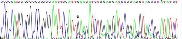 然后突然在某一個位點出現(xiàn)重疊峰(如圖中箭頭所示)。