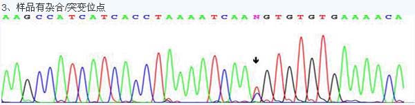 雜合位點。如果模板有雜合(突變或缺失),那么測序圖形中其他的位點一般都是單一的峰形,