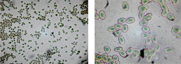 堿性蛋白的顯示結(jié)果(左圖×100,右圖×400)