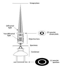 2. 相位板(annular phaseplate)在物鏡中加了涂有氟化鎂的相位板,可將直射光或衍射光的相位推遲1/4λ。分為兩種: