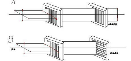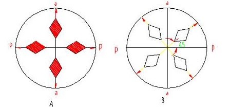 平行檢偏位(A)與正交檢偏位(B)的示意圖