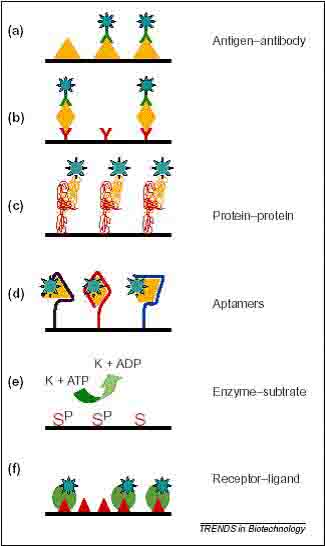 與DNA芯片相比,蛋白質(zhì)芯片卻沒有這么容易制作?茖W(xué)家們僅從蛋白一級序列結(jié)構(gòu)出發(fā)很難預(yù)測出其具有高親和力的捕捉分子。這是因?yàn)榈鞍椎母呒壗Y(jié)構(gòu)是多樣的,與捕捉分子有多種可能的相互作用模式,而且蛋白與捕捉分子的相互作用是通過蛋白質(zhì)的高級結(jié)構(gòu)的靜電力、氫鍵、疏水的范德華力,以及這三種力的聯(lián)合作用而產(chǎn)生的。此外,蛋白質(zhì)可以同時(shí)和不同分子結(jié)合發(fā)生作用,形成復(fù)合物,加之胞內(nèi)轉(zhuǎn)錄后動(dòng)態(tài)的修飾過程(如:糖基化和磷酸化)可對蛋白相互作用產(chǎn)生重大影響使得蛋白質(zhì)芯片的制作就更難了。因此,每一種蛋白捕捉分子必須單獨(dú)制備出來,所獲得的捕捉分子不僅需要具有親和力強(qiáng)的特點(diǎn)還需要有選擇性強(qiáng)且交叉反應(yīng)性低的特點(diǎn)。