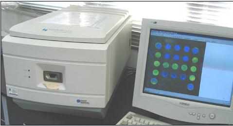 載體表面蛋白的固定: 蛋白芯片與樣品反應(yīng)。探針可以與相應(yīng)的目的分子特異性的結(jié)合,帶有熒光的報(bào)告分子與目的分子特異性的結(jié)合。 反應(yīng)結(jié)果的檢測儀器: