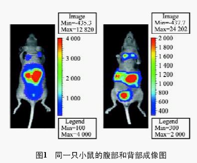 三維成像對(duì)于二維成像技術(shù)的優(yōu)勢(shì)自然不必多說(shuō),一個(gè)非常接近的例子就是CT 與X-Ray 成像的區(qū)別。尤其當(dāng)利用可見(jiàn)光成像時(shí),因?yàn)榭梢?jiàn)光穿透性的限制,透過(guò)動(dòng)物體內(nèi)時(shí),又有不可避免的折射和散射,即使對(duì)同一只老鼠成像時(shí),在腹部和背部成像的結(jié)果可能有很大的區(qū)別。沒(méi)有三維成像技術(shù),很難對(duì)結(jié)果做出滿意的解釋(圖1)。