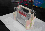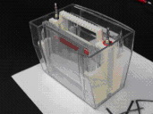 5、加樣時(shí)可用加樣器斜靠在提手邊緣的凹槽內(nèi),以準(zhǔn)確定位加樣位置。蓋好上蓋,在電壓150伏以下進(jìn)行電泳分離,根據(jù)指示劑位置確定電泳時(shí)間。電泳結(jié)束后,關(guān)掉電源按住本體提手打開上蓋,拔掉固定板,取出玻璃板,用刀片或薄板輕輕將玻璃夾層分開。本電泳槽同時(shí)可進(jìn)行雙板電泳,如果只跑一塊膠時(shí),需要在另外一側(cè)用單膠替代板代替玻璃。