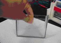 2、 將兩塊玻璃立起來使其底端接觸桌面,用手將兩塊玻璃板夾住放入電泳槽內(nèi),然后插入斜楔板(直面對(duì)玻璃,斜面對(duì)槽)到適中程度,即可灌膠(圖2,圖3)。
