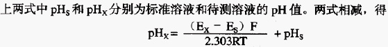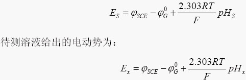 由上式可知,E 與pH 呈線性關系。只要測得E 便可求得pH。由于4 乇通常是未知的,所以實際測定中應該用與待測溶液pH 值相近的標準溶液定位。在原電池中標準溶液給出的電動勢為: