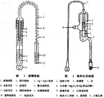 玻璃電極(圖1)由Ag-AgCl 電極、鹽酸和特制的球型玻璃膜構成。將它插入待測溶液.其電極電位 與溶液pH 值有下列關系