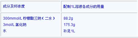 溶解檸檬酸三鈉(二水)和氯化鈉于約0.9L水中,加幾滴10N NaOH溶液調(diào)pH為7.0,用水補(bǔ)足體積至1L。