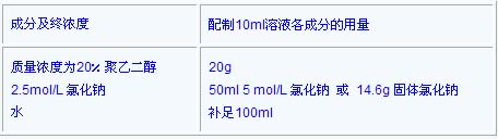 加聚乙二醇于含有氯化鈉的燒杯中,加水至終體積100ml,用磁力攪拌器攪拌溶解。