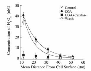 圖2嗜鉻粒蛋白A誘導(dǎo)培養(yǎng)的微神經(jīng)膠質(zhì)細(xì)胞釋放H2O2。[4]