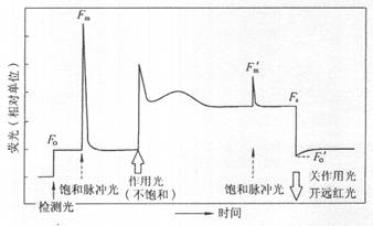 圖1 用脈沖調(diào)制式熒光儀測(cè)定熒光參數(shù)的葉綠素?zé)晒鈩?dòng)力學(xué)曲線(xiàn)