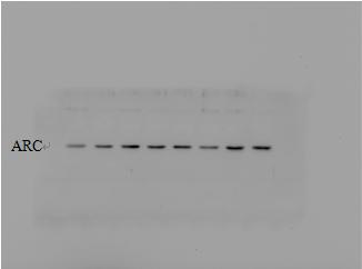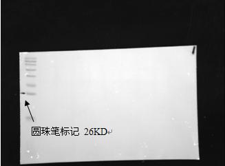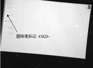 化學發(fā)光下目的蛋白條帶 蛋白上樣量:120μg 分離膠濃度:12%