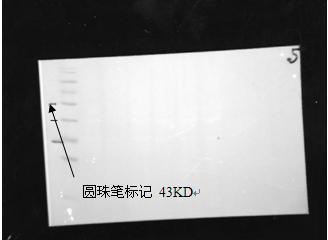 (3)將膜放入照膠儀,調整明暗、大小、焦距,在目的條帶的marker出,用圓珠筆標一個印記。