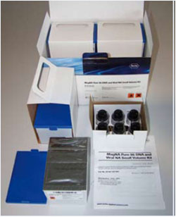 或從1000μl血漿或血清中分離病毒DNA或RNA。試劑盒包括3個預(yù)裝式試劑 圖1:試劑盒組件。