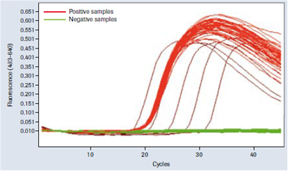 進(jìn)行3次“棋盤式”運(yùn)行(每次有48份陽性加樣血漿樣品和48份陰性未加樣血漿樣品排列成棋盤狀)。 在LightCycler® 480儀器上對洗脫液進(jìn)行分析。 在這些條件下未發(fā)現(xiàn)交叉污染(圖6)。