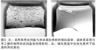使用篩選試劑盒時(shí),結(jié)晶溶劑必須先從溶劑試管分裝到96深孔板中并立即用防揮發(fā)蓋子蓋上,以保證配制好的溶液濃度不發(fā)生任何改變。完成這一步之后的移液與移板操作都與前面描述的相同。試劑盒篩選包適用于商用試劑盒。