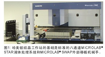 哈美頓開(kāi)發(fā)了用于全自動(dòng)蛋白結(jié)晶的蛋白結(jié)晶工作站,它具有最高的可靠性和定位與移液準(zhǔn)確度。程序一旦完成對(duì)微孔板、試劑以及工作表的檢查,工作站的工作將不再需要用戶的干預(yù)。