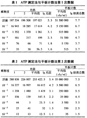 2.1 ATP測定法與平板計數(shù)法試驗(yàn)結(jié)果