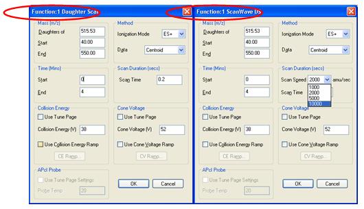 應(yīng)用實例 1 ,仍以維庫溴銨(濃度為 20ppb )為例,分別進(jìn)行 Daughter Scan 和 ScanWave Daughter Scan 兩種掃描實驗,