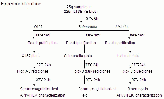 食品中O157,沙門氏菌,單增李斯特菌免疫磁珠檢測流程(數(shù)據(jù)來源于上海浦東疾控)