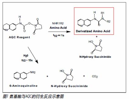 使用 AccQ•Tag Ultra 衍生試劑( 6- 氨基喹啉 -N- 羥基琥珀酰亞氨基甲酸酯)對(duì)氨基酸進(jìn)行衍生,伯氨基酸和仲氨基酸均可快速、定量完成衍生反應(yīng),操作簡(jiǎn)便,衍生反應(yīng)還可以自動(dòng)化進(jìn)行( batch wise )。