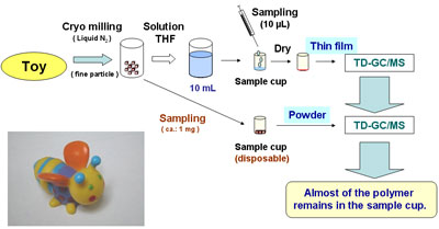 The TD-GCMS method using Frontier Lab pyrolyzer has been proved to be useful in the rapid screening and quantitative determination of the six regulated phthalates in plastic toys.
